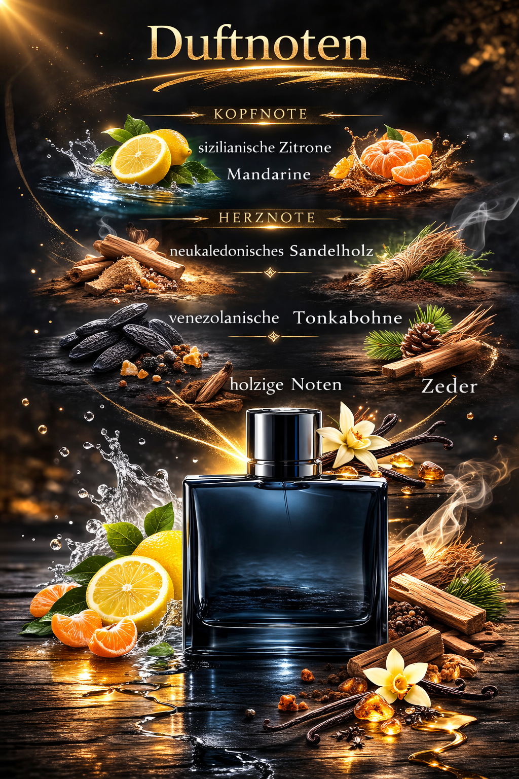 Bleu de Bleu is a modern, fresh perfume oil with maritime clarity and woody depth. The sophisticated composition combines zesty citrus notes with aquatic freshness and a warm, masculine base of sandalwood, vetiver, and tonka bean. A timeless, elegant fragrance, developed for high-end fragrance concepts in the professional B2B sector.
