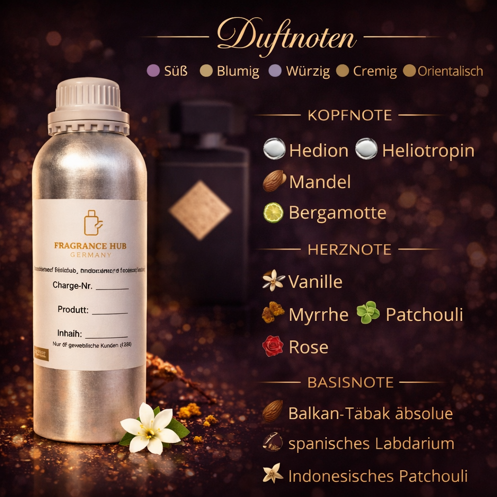 Silent Aur fragrance oil captivates with its long-lasting scent intensity and unique character. It lends your perfumes an elegant and seductive touch that will delight your customers. The high-quality ingredients ensure optimal fragrance development and pleasant diffusion.