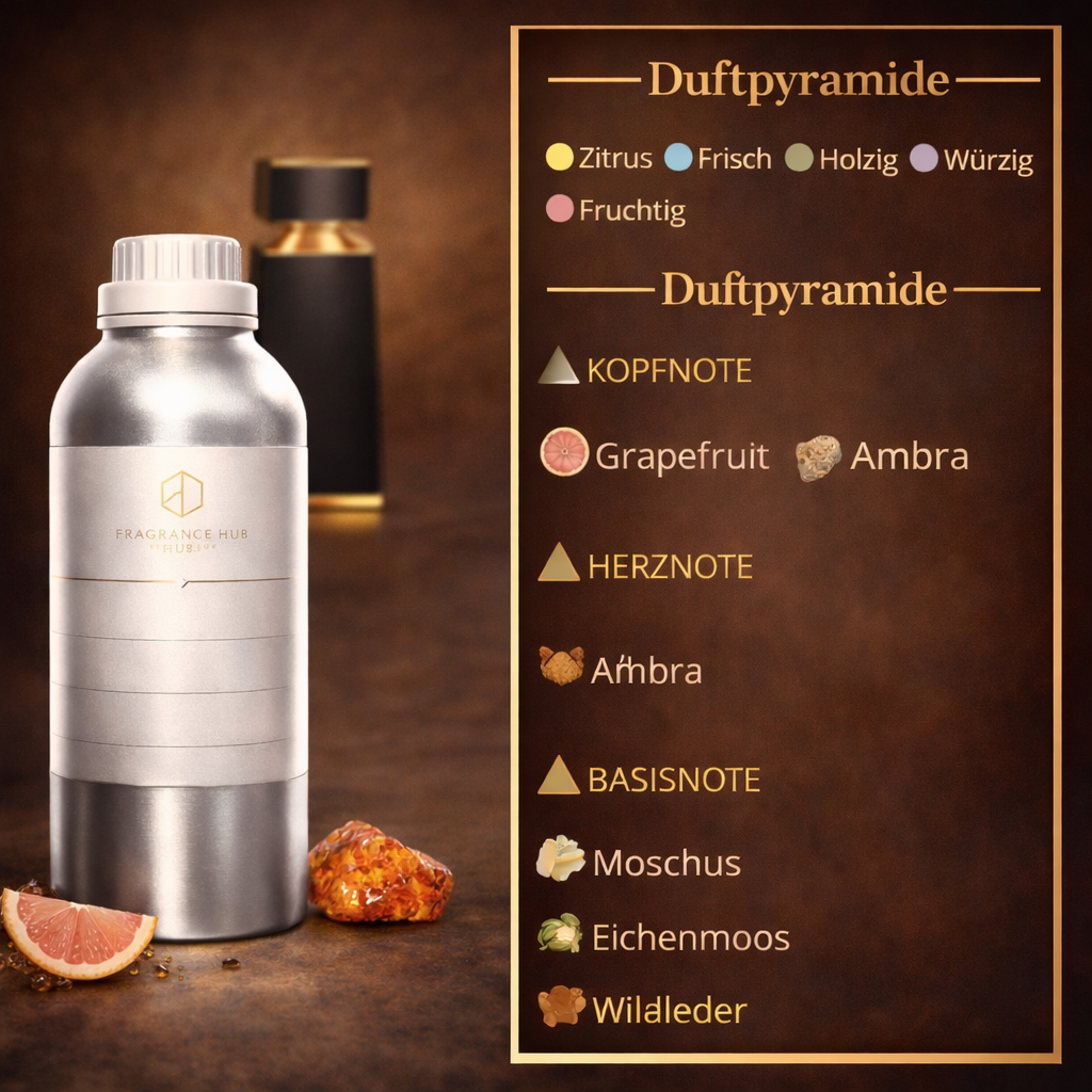 This exclusive perfume oil is perfectly suited for creating luxurious, dynamic fragrances. The balanced combination of fresh, citrusy grapefruit and warm, sensual amber makes it the ideal base for sophisticated, citrusy-woody perfume compositions with a premium character.