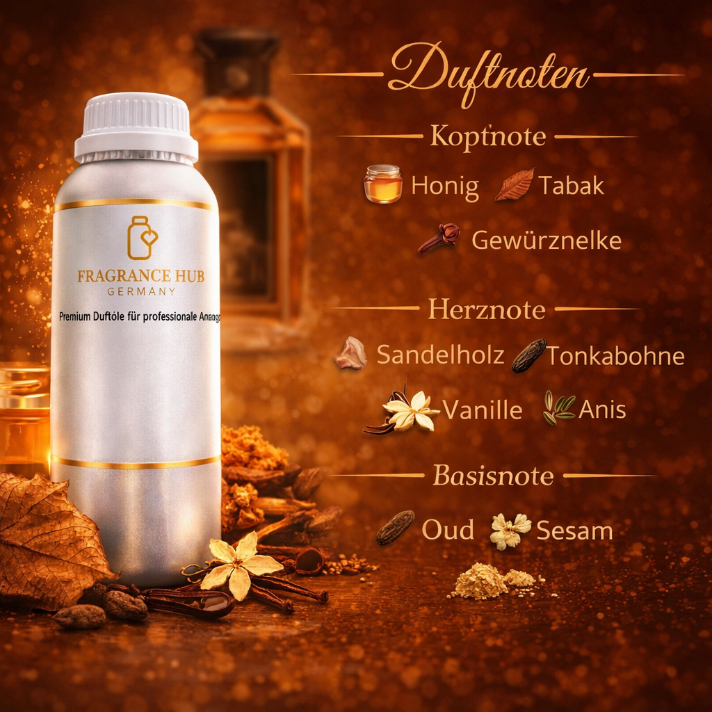 Hönig Tobacco is an exclusive premium perfume oil specially developed for professional perfume manufacturing. This highly concentrated perfume oil offers B2B partners an exceptional oriental fragrance composition for creating luxurious and exclusive perfumes.