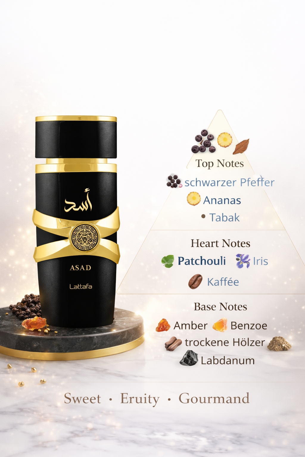 Asad Black By Lattafa - A luxurious oriental perfume oil that combines elegance and allure.