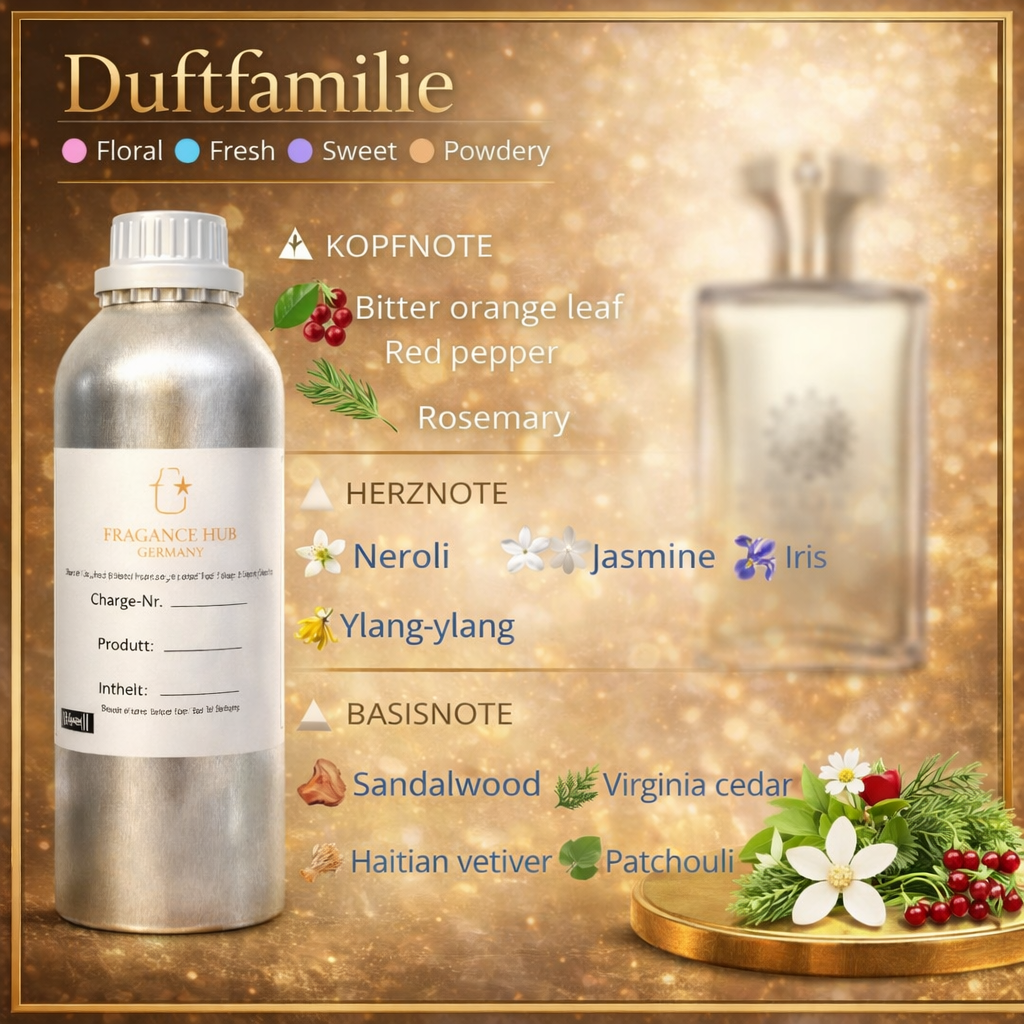 A high-quality formulation with excellent longevity and elegant sillage. This premium composition offers an intense fragrance development with a clear, sophisticated aura and confident character. It is subtly elegant with a modern, masculine signature. Ideal for men's fragrance collections, private labels, upscale occasions, business lines, and demanding B2B projects.