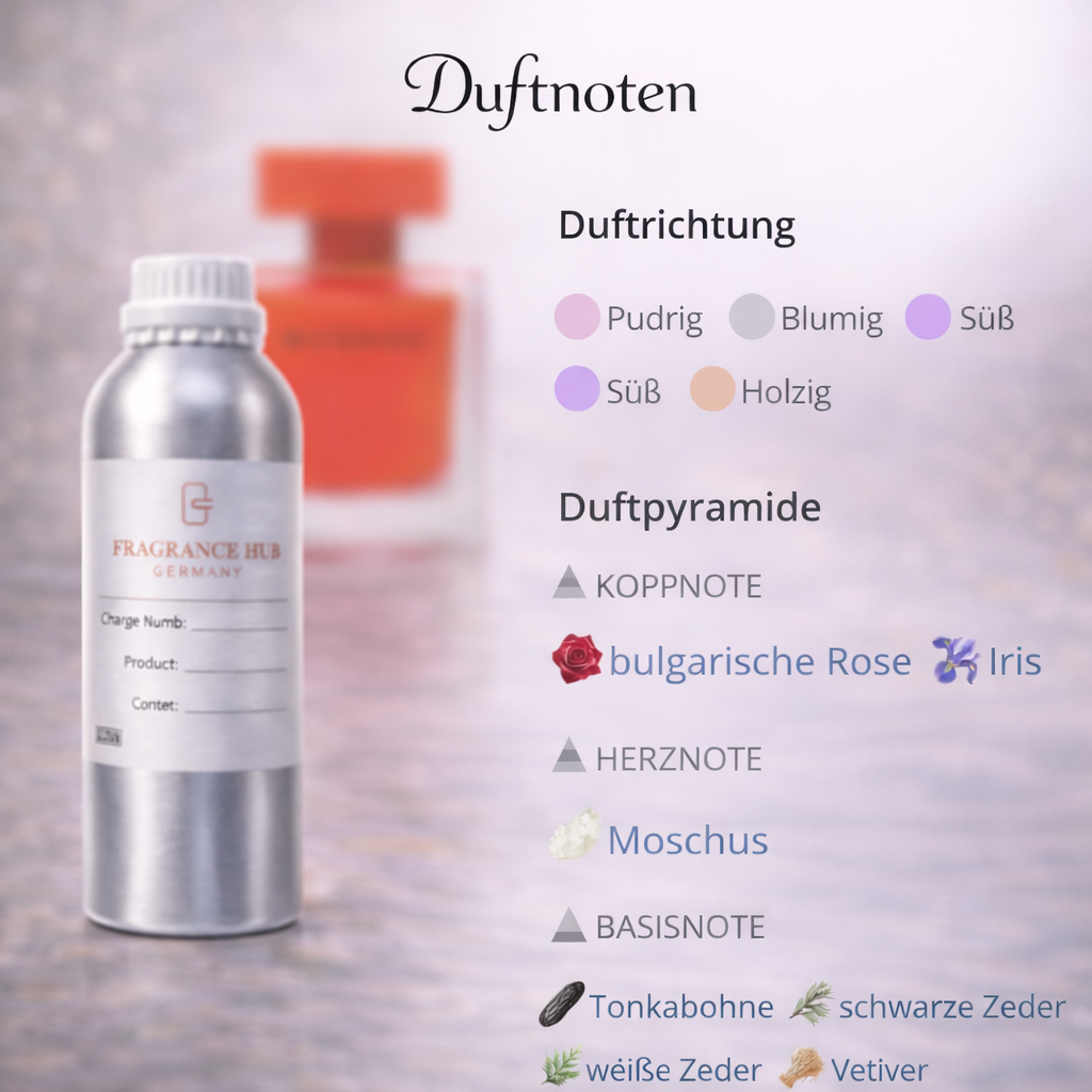 Rouge Touch is a blend of floral and powdery notes that leave a captivating and long-lasting fragrance. The harmonious combination of Bulgarian rose, iris, musk, tonka bean, and cedarwood ensures high quality and optimal blendability with other fragrance components. The carefully selected ingredients create an elegant and feminine fragrance composition.