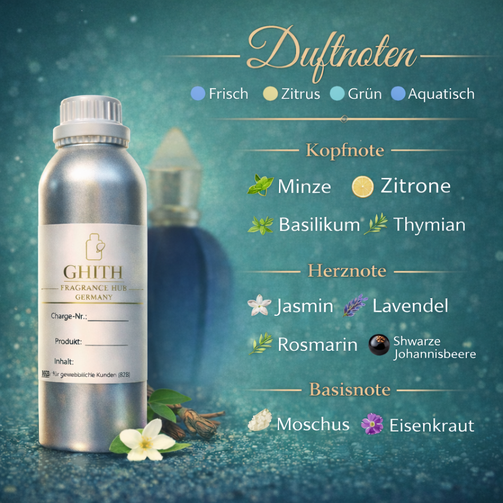 Our exclusive quality is characterized by a particularly high fragrance concentration, intense projection, and above-average longevity. The composition appears high-quality, clearly structured, and professionally balanced – ideal for discerning markets.