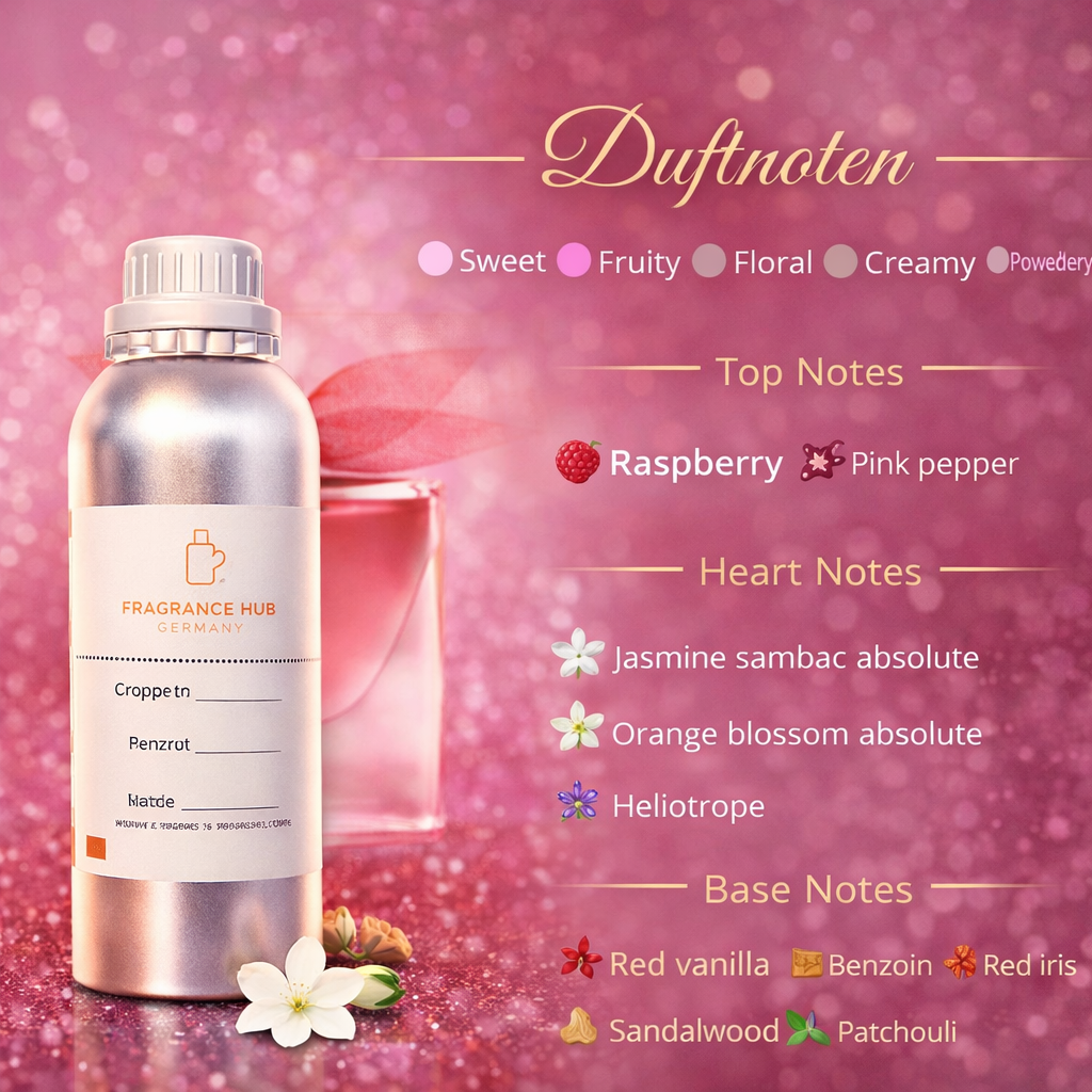 Our premium-quality perfume oil impresses with its exceptionally high fragrance concentration, intense projection, and outstanding longevity. The carefully selected raw materials ensure a smooth, luxurious development and impressive depth of scent – ideal for professional perfumery.