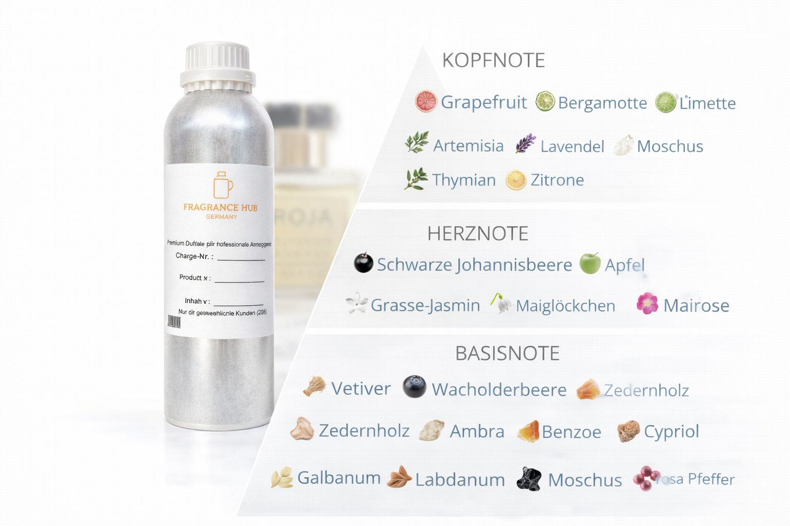 Hinweis: Dieses Produkt ist ein hochwertiges Parfümöl in Premium & Exklusiver Qualität, speziell entwickelt für die professionelle Luxus-Parfümherstellung und die Kreation exklusiver Duftprodukte.