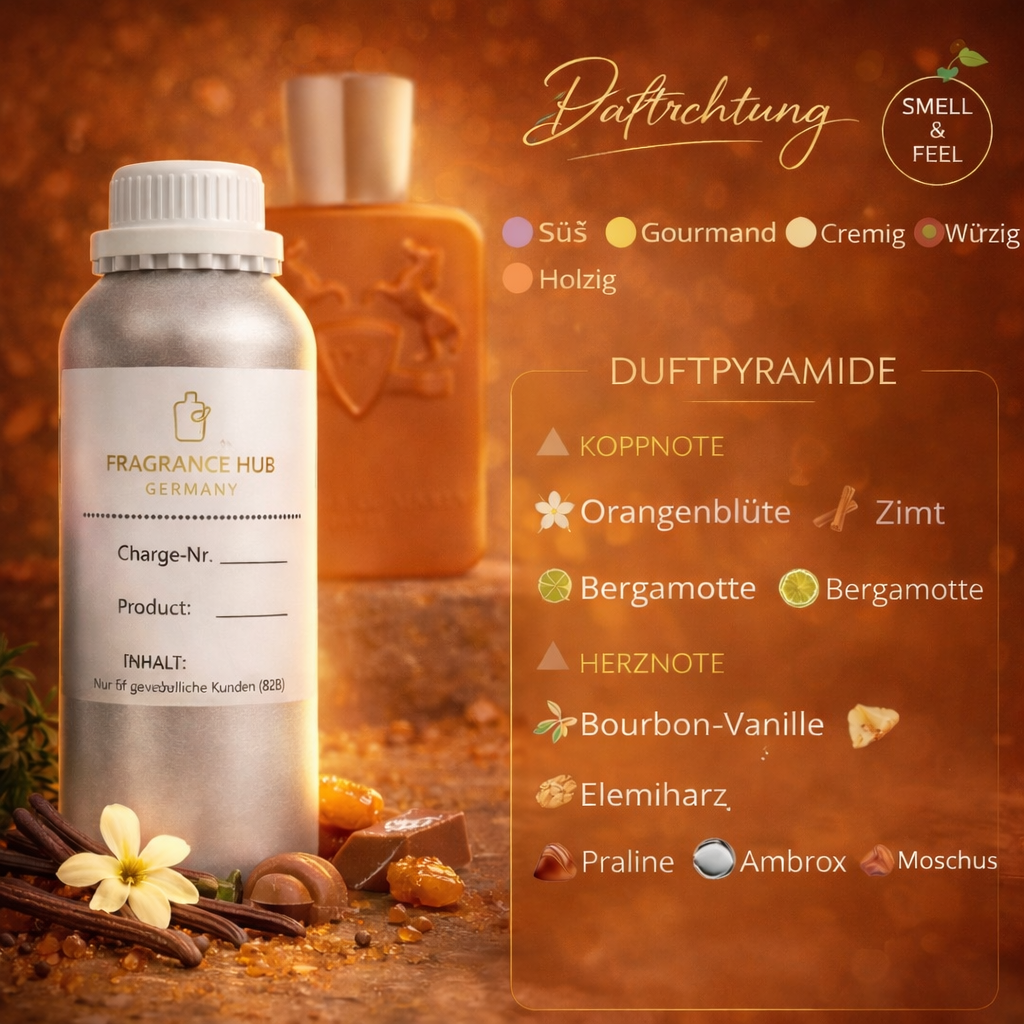 FHG Altairis ist ein hochwertiges, konzentriertes Parfümöl in Exklusiver Qualität, konzipiert für den professionellen B2B-Einsatz. Der Duft kombiniert eine elegante Gourmand-Süße mit cremiger Wärme, feiner Würze und edlen Hölzern – modern, luxuriös und langanhaltend.