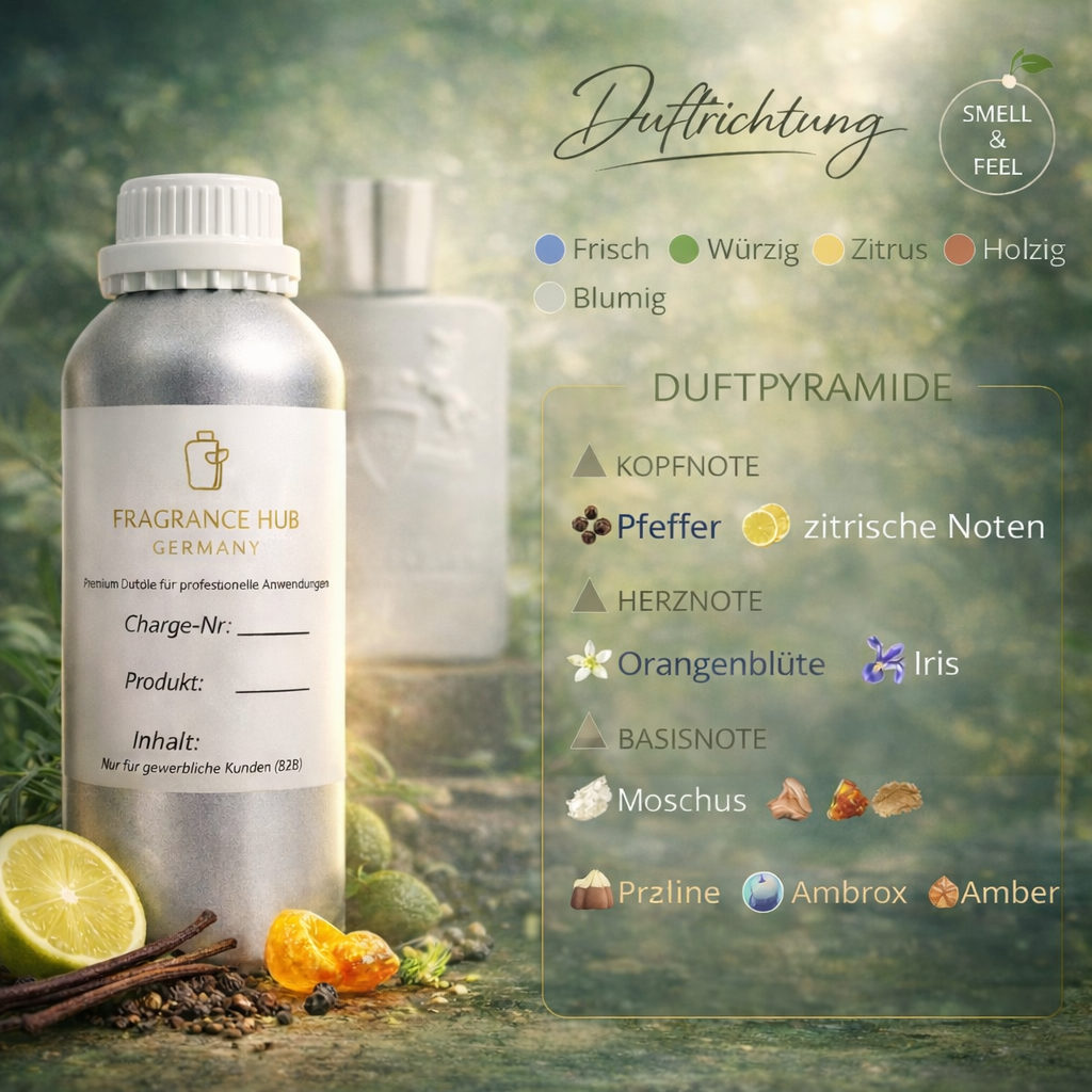 Entdecken Sie Galayoy, ein außergewöhnliches Premium Parfümöl, das durch seine einzigartige Duftpyramide besticht. Diese sorgfältig komponierte Duftkreation vereint frische, würzige und holzige Nuancen zu einem harmonischen Gesamtkunstwerk – ideal für die professionelle Parfümherstellung.