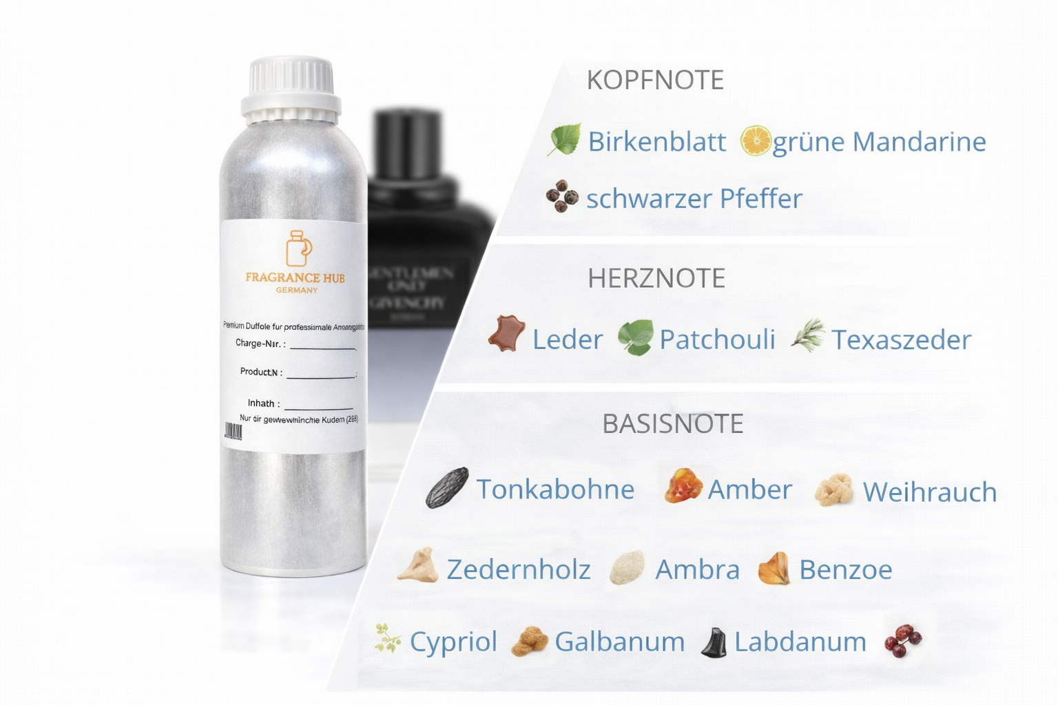 Entdecken Sie die intensive Eleganz dieses holzig-würzigen Parfümöls, das speziell für die Parfümherstellung entwickelt wurde. Dieses hochwertige Parfümöl in Standard-Qualität bietet Ihnen die perfekte Basis für Ihre eigenen Duftkreationen.