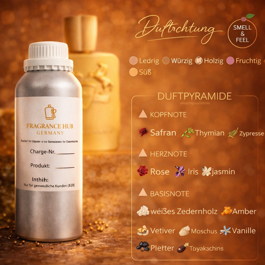 Erleben Sie mit Godalfin ein Parfümöl, das durch seine außergewöhnliche leder-orientalische Duftarchitektur überzeugt und Ihre Parfümherstellung auf ein neues Level hebt. Die edle Kombination aus Safran, floralen Noten und warmen Leder-Holznuancen macht dieses Parfümöl zu einer unverzichtbaren Komponente für anspruchsvolle und luxuriöse Duftkreationen mit königlicher Eleganz.