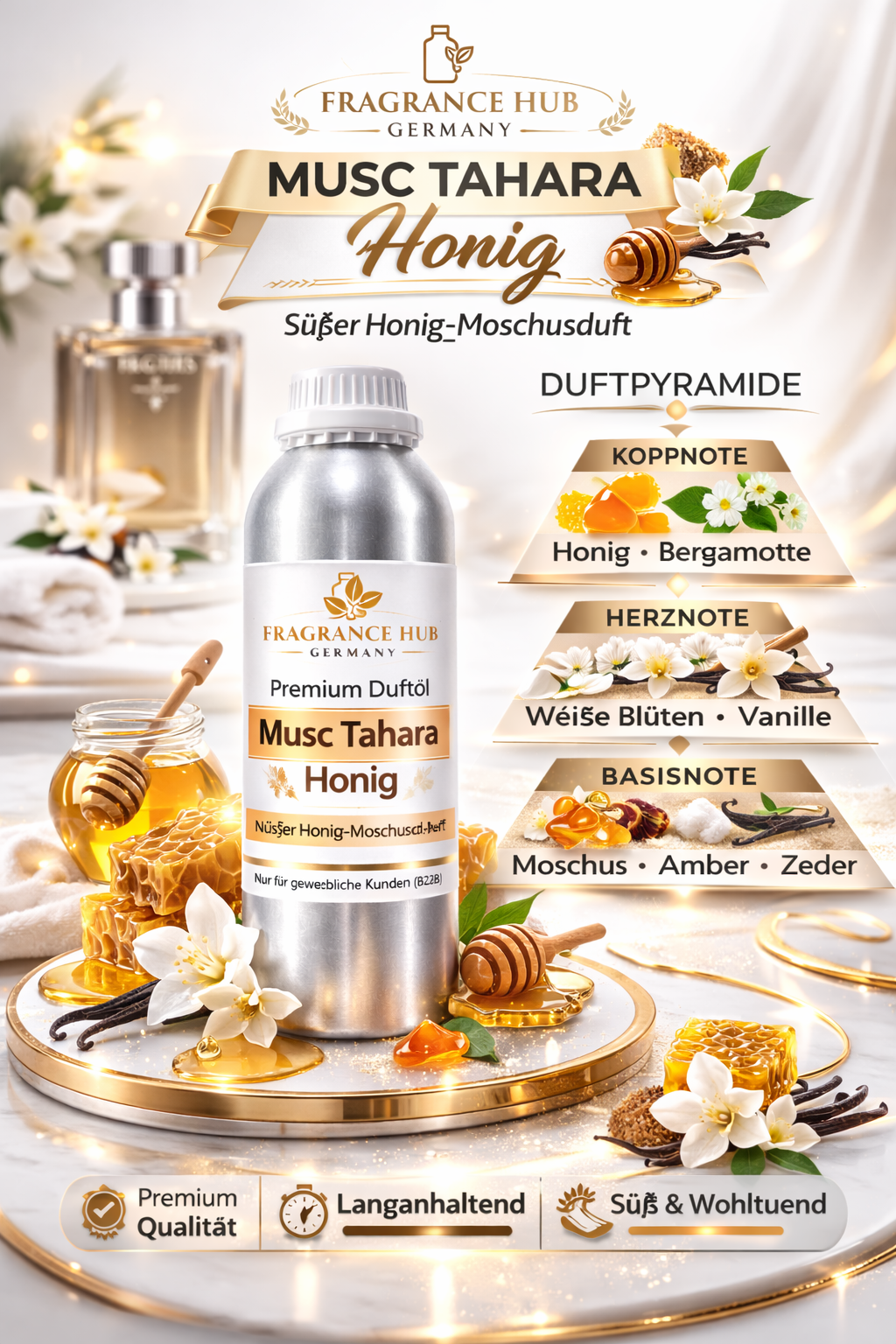 Das Honig-Moschus Tahara Duftöl besticht durch seine langanhaltende und sinnliche Duftnote. Es vereint die süße Note von Honig mit dem verführerischen Aroma von Moschus, um ein einzigartiges olfaktorisches Erlebnis zu schaffen. Dieses Duftöl ist vielseitig einsetzbar und kann in verschiedenen Parfümkompositionen verwendet werden.