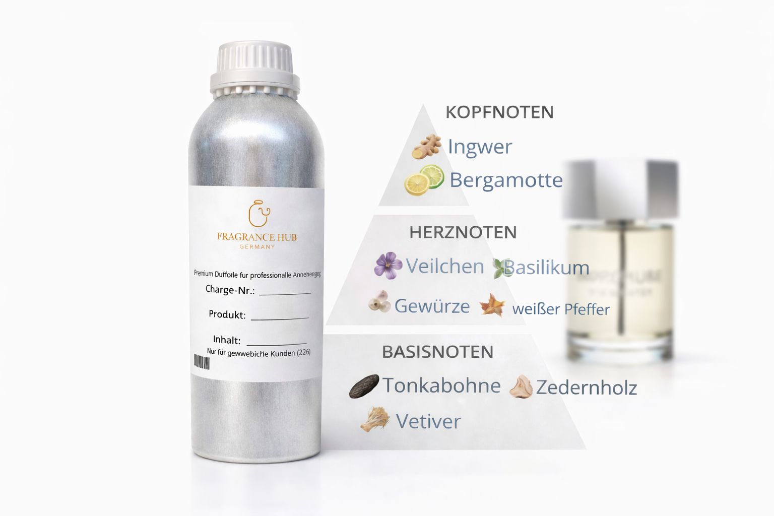 Entdecken Sie die zeitlose Eleganz dieses frisch-würzigen Parfümöls, das speziell für die Parfümherstellung entwickelt wurde. Dieses hochwertige Parfümöl in Standard-Qualität bietet Ihnen die perfekte Basis für Ihre eigenen Duftkreationen.