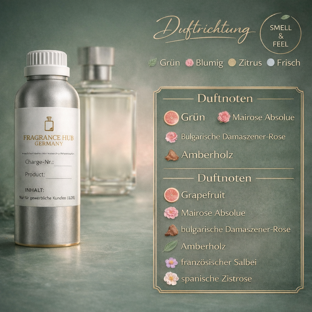 Erleben Sie mit L'Homme Rose ein Parfümöl, das durch seine außergewöhnliche blumig-frische Duftarchitektur überzeugt und Ihre Parfümherstellung auf ein neues Level hebt. Die raffinierte Kombination aus frischer Grapefruit, edler Mairose Absolue, bulgarischer Damaszener-Rose, spanischer Zistrose, warmem Amberholz und aromatischem französischem Salbei macht dieses Parfümöl zu einer unverzichtbaren Komponente für anspruchsvolle und elegante Duftkreationen mit maskulinem Rosencharakter.
