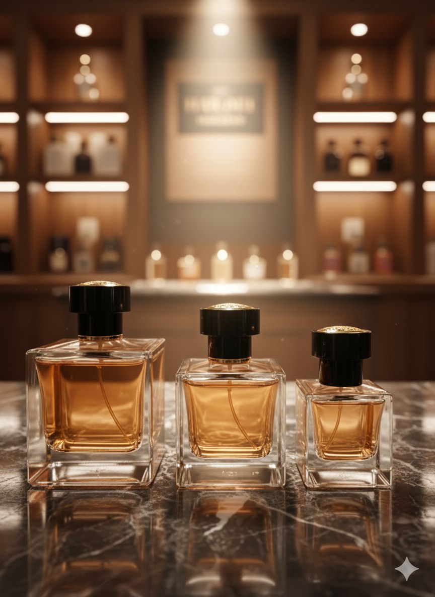 Luxuriöse, quadratische 50 ml Parfümflasche im Stil von ikonischen Designklassikern – perfekt für edle Parfums.